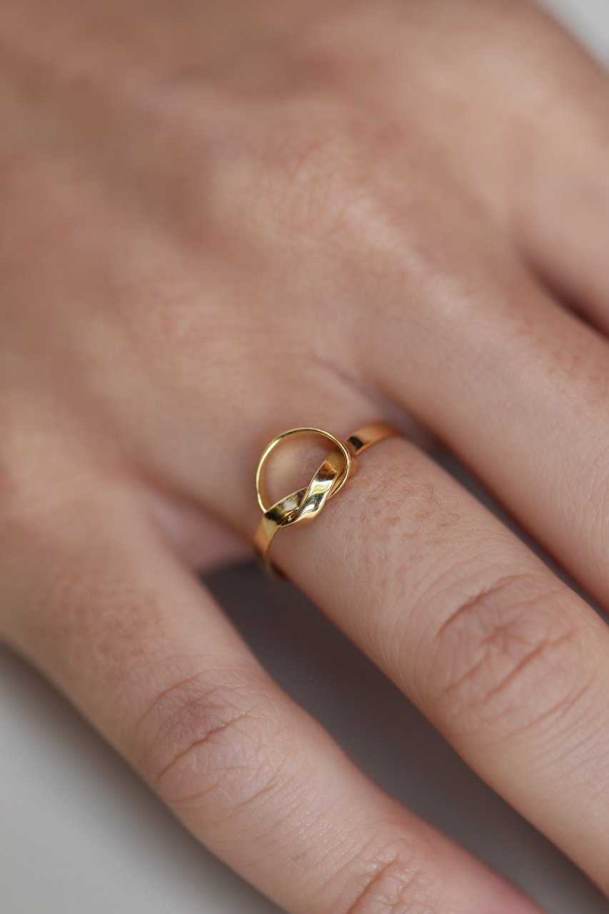 özel el işçiliği gold rengi uygulanmış kör düğüm yüzük modeli